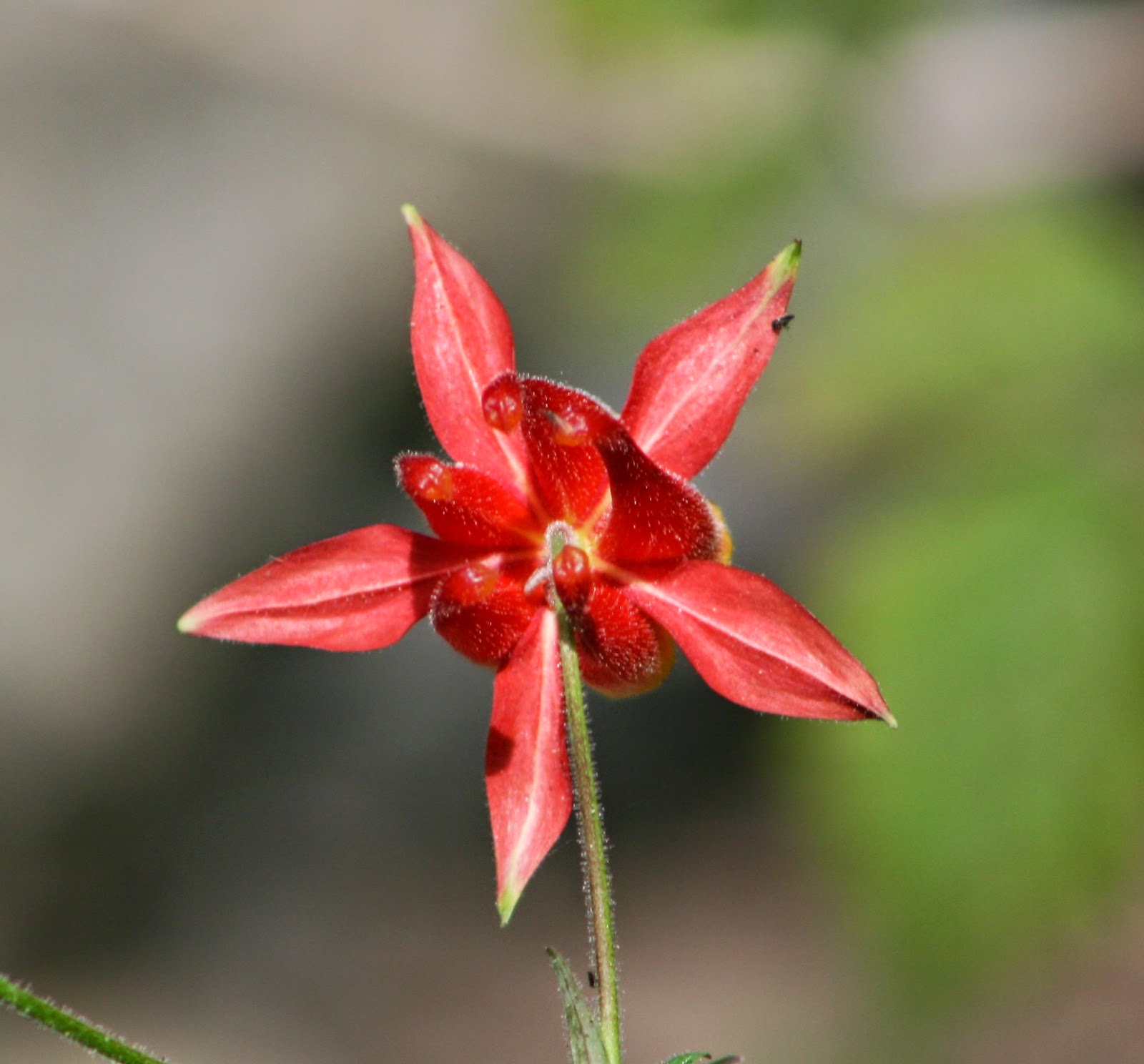 Western columbine also seen from the bridge. This is one of my favorite native plants, with its lovely, down-facing flowers of red and yellow.